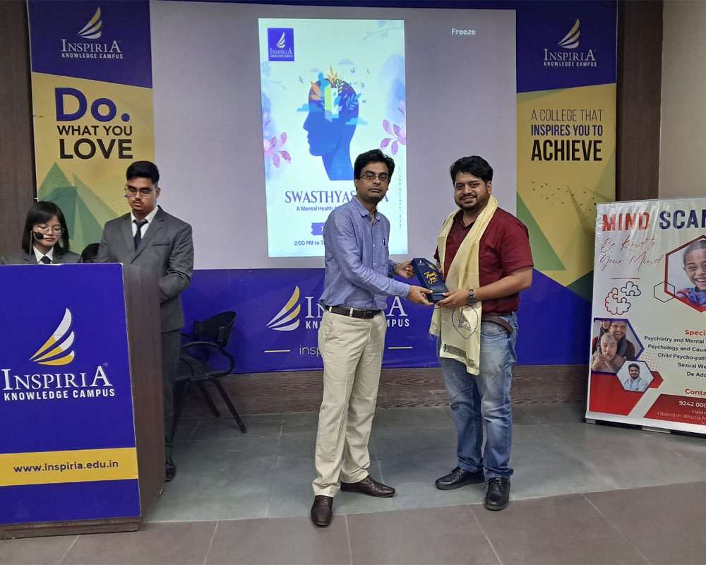 On 17th July 2025, Dr. Twishampati Naskar took an active role in a Mental Health Awareness Program held at Inspiria Knowledge Campus. In his session, Dr. Naskar emphasized the significance of mental well-being and shed light on prevalent myths and misunderstandings related to psychological health. The event saw enthusiastic participation from both students and faculty, encouraging open conversations and promoting a supportive environment for mental health within the academic community.